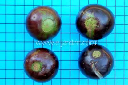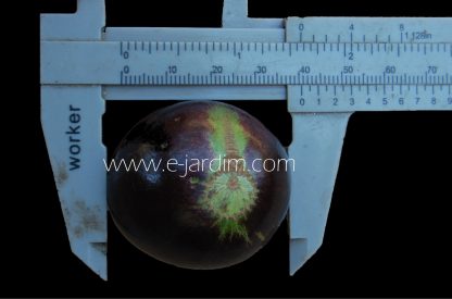 Frutos enormes (3-4 cm), negros ou rajados, subglobosos e com um pequeno disco claro no ápice (a dita “coroa”), de casca fina ou grossa, conforme a forma botânica. Polpa doce e abundante.