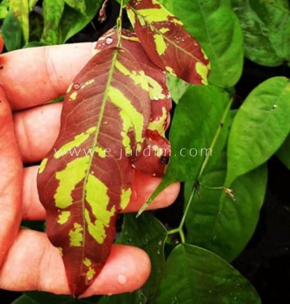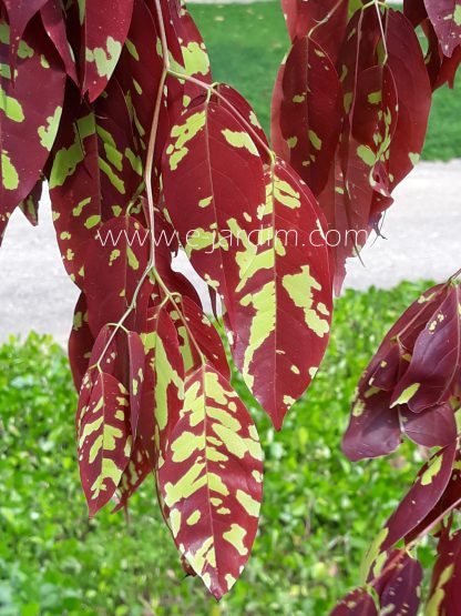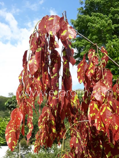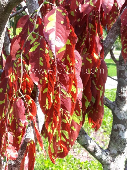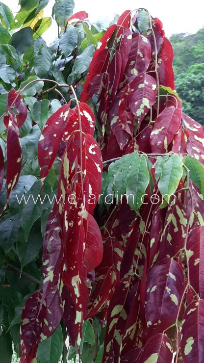 Árvore de porte pequeno a médio, ainda pouco explorada no paisagismo brasileiro, mas de extraordinário efeito ornamental. Sua principal característica de beleza está nas folhas jovens, que surgem pendulares em forma de lenços, exibindo coloração vermelho-vibrante salpicada por manchas verde-esmeralda luminosas.