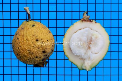 frutos de 4 a 6 cm, amarelos quando maduros, de casca rugosa espessa (o que a torna resistente ao ataque da mosca-das-frutas). A polpa é branca, fundente e de delicioso sabor doce, envolvendo as sementes. Juntamente com C. lineatifolia (palilo) é considerada a melhor guabiroba.