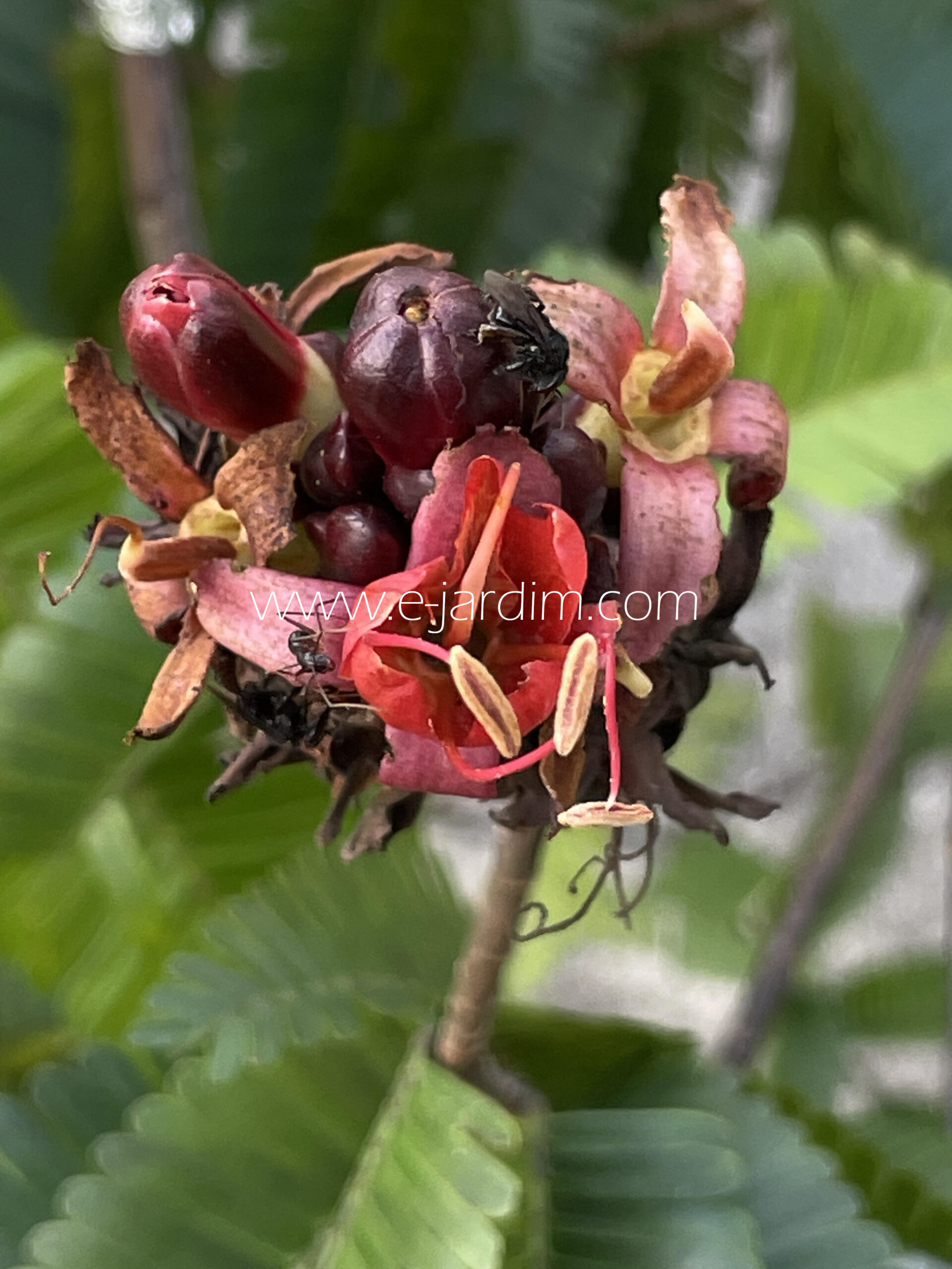 Pequena árvore amazônica (2-3 m em cultivo) de extraordinário efeito ornamental, destacando-se principalmente pelas flores intensamente vermelhas, reunidas em inflorescências pendentes e muito vistosas. As pétalas e os longos estames contrastam elegantemente com a folhagem verde, produzindo um espetáculo floral incomum entre as árvores da floresta amazônica.