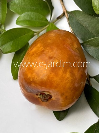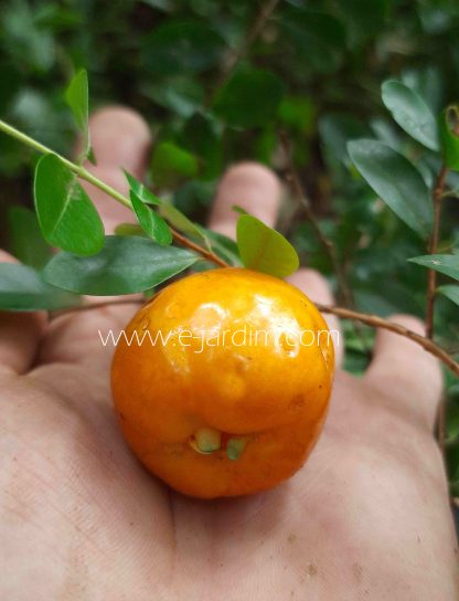 Eugênia de fruto grande, com formato mais ou menos cônico (lembrando o pseudofruto do caju), de superfície lisa alaranjada com casca fina e comestível. A polpa, igualmente alaranjada, é de consistência tão firme quanto a do caju, com textura muito similar à da última fruta. O sabor porém é acidulado e aromático (sem nenhum traço de adstringência ou amargor), remetendo ao da uvaia (Eugenia pyriformis) com toques de feijoa (Feijoa sellowiana), parecido portanto com o sabor da pitanga-feijoa (Eugenia azeda) que é nativa do litoral do Rio Grande do Norte e Ceará.