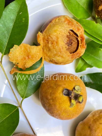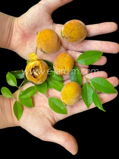 Fruto oblado a elipsoide, grande (4-5 cm de diâmetro), de superfície velutina (aveludada), com casca fina amarelo-alaranjada, encerrando polpa de mesma cor, agridoce com poucas fibras e alguma granulosidade, lembrando em aspecto e sabor a nêspera-japonesa ou ameixa-amarela (Eriobotrya japonica). A semente (única por fruto) é solta dentro da polpa (ver fotos). Na extremidade, apresenta 4 sépalos grandes, de ápice atenuado. Pertence ao subgênero Pseudeugenia, que contém aproximadamente 25 espécies com frutos grandes e saborosos, de casca fina aveludada, a maioria nativa do Brasil (Amazônia, Cerrado e Mata Atlântica).