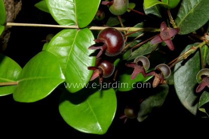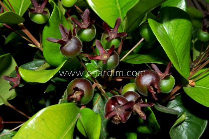 Fruto subgloboso de 2 cm, coroado por pétalas persistentes, de polpa doce e aquosa. Sabor doce e agradável.