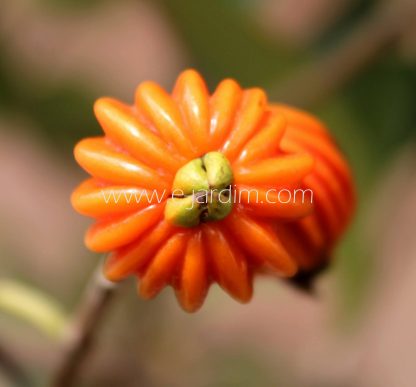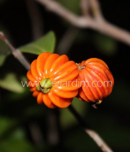 Frutos de 4-5 cm, alongados, vermelhos, costados à maneira de uma pitanga gigante, de sabor muito agradável.