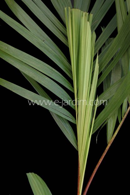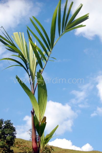Palmeira extremamente elegante e de palmito vistoso, de coloração vermelho-escura quase negra (ver primeira foto), formando touceiras. Seu porte é reduzido (3-4 m) e seus folíolos muito espaçados na raque, com as extremidades terminando em várias pontas (terceira imagem).