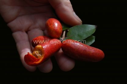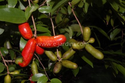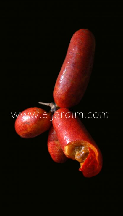 Curioso fruto de casca vermelha fina e formato de uma pequena salsicha, daquelas utilizadas em sanduíches “hot dog”. A casca fina e delicada encerra uma doce polpa amarelo-alaranjada, de sabor agradável e semelhante ao do biribá (Rollinia mucosa), contendo algumas poucas sementes diminutas. A árvore apresenta pequeno porte (2-3 m) e copa colunar.