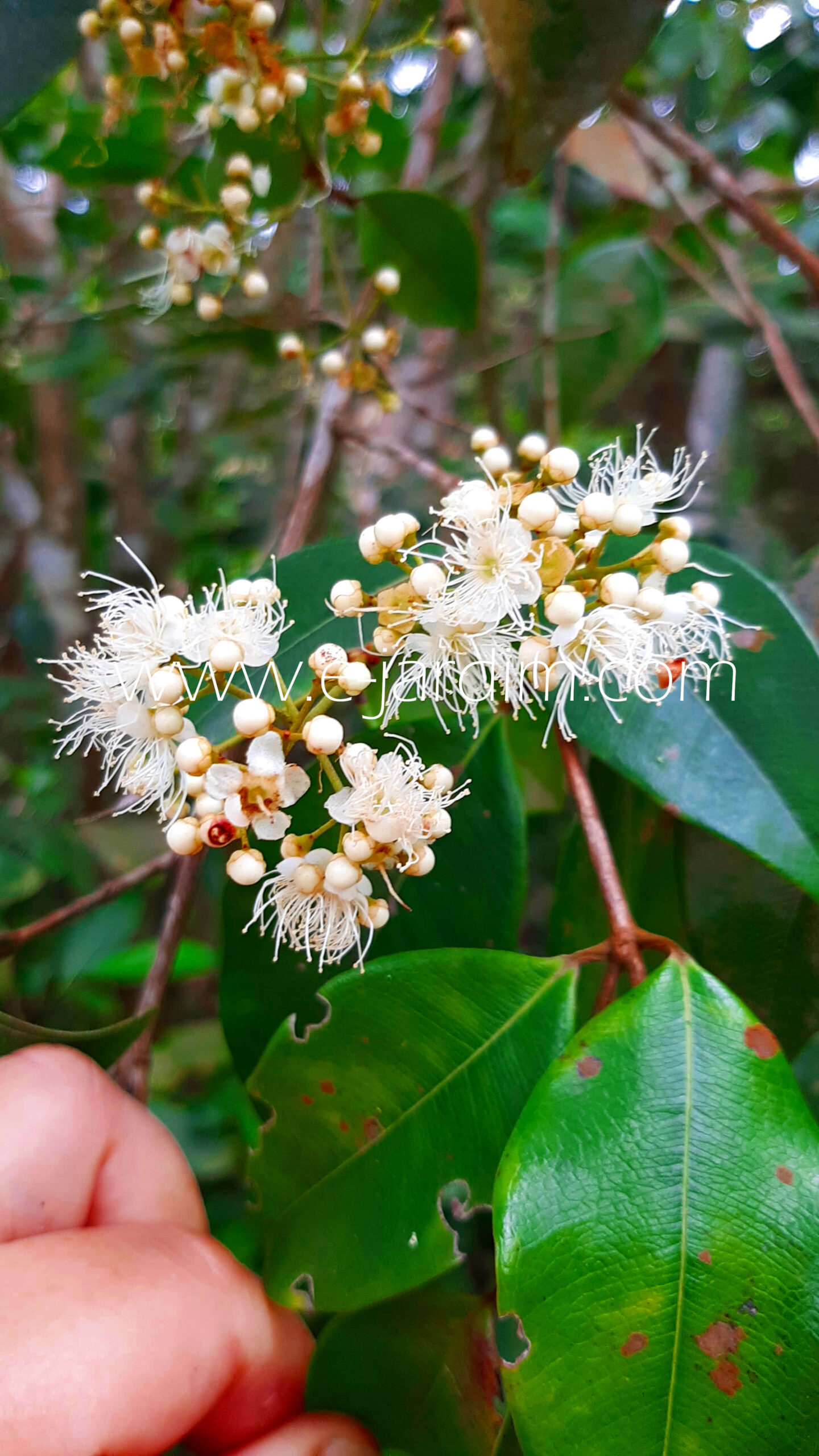 Planta de pequeno porte, formando uma arvoreta elegante, de crescimento rápido. As folhas jovens surgem acastanhadas e com indumento evidente, evoluindo para tons vermelhos intensos, quase rubi, antes de atingirem o verde escuro na maturidade — criando um contraste ornamental marcante. Produz floração extremamente abundante, altamente melífera, atraindo abelhas, especialmente as sem ferrão, seguida de frutificação precoce e generosa.