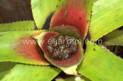 Bromélia estolonífera com mais de 30 folhas arranjadas em roseta de cerca de 30 cm de diâmetro. O centro da planta toma uma linda coloração (ver foto) pouco antes do início da floração.