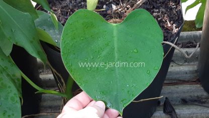 Lindo filodendro de porte pequeno a médio, de folhas perfeitamente cordiformes (em forma de coração), com textura cartácea (de cartolina), bem lisas e muito brilhantes, razão de seu nome popular. Distingue-se facilmente de Philodendron grazielae por possuir pecíolos (cabinhos das folhas) mais robustos e porte mais avantajado.
