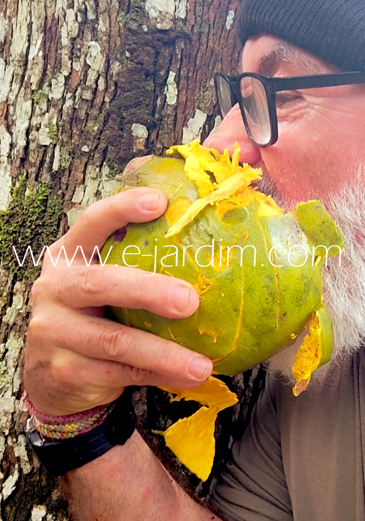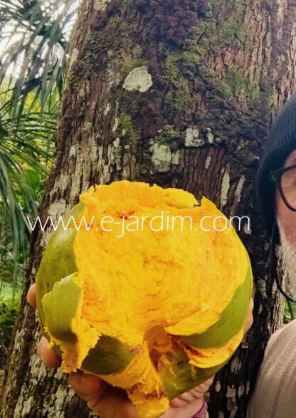 Fruto gigante, arredondado, pesando em média mais de 1 kg, com casca verde espessa, de polpa amarela intensa, cremosa-pastosa, lembrando a de canistel com mais umidade. Sabor adocicado, rico em aroma, ideal para consumo in natura ou preparo de sucos, sorvetes e sobremesas.