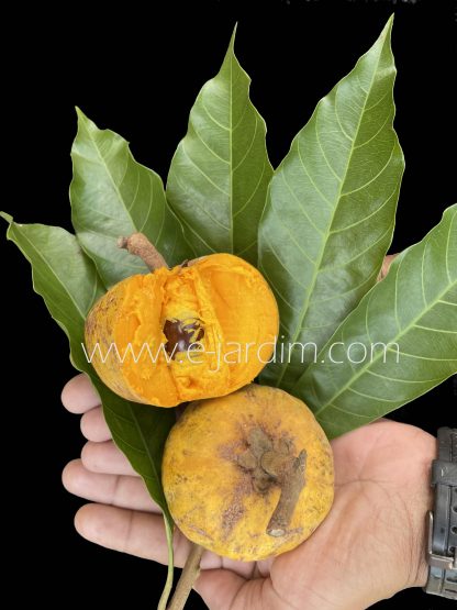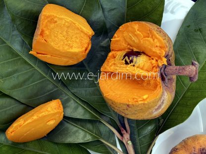 Fruto arredondado e achatado nas extremidades, de 12-15 cm de diâmetro, dotado de casca amarelada fina, que envolve uma polpa cremosa amarelo-ovo, muito doce e saborosa. Assemelha-se um pouco ao canistel (Pouteria campechiana), porém superando-o muito em textura e sabor. A árvore possui porte pequeno, equivalente ao de um pequeno abiuzeiro (Pouteria caimito).