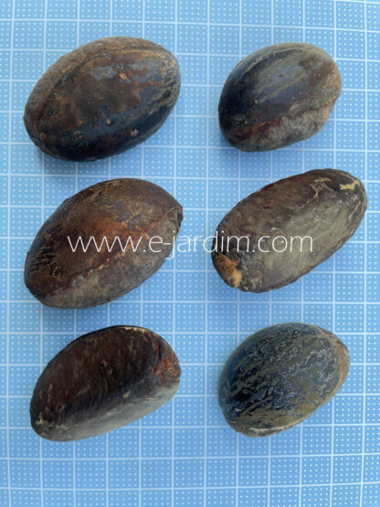 Observações: Frutífera recentemente descoberta, ainda não formalmente descrita, mantida como Pouteria sp. A superfície do fruto, caracterizada por cristas aliformes irregulares e coalescentes, constitui caráter diagnóstico marcante. Planta de grande interesse para colecionadores de frutíferas raras da Mata Atlântica.