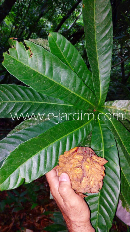 Observações: Frutífera recentemente descoberta, ainda não formalmente descrita, mantida como Pouteria sp. A superfície do fruto, caracterizada por cristas aliformes irregulares e coalescentes, constitui caráter diagnóstico marcante. Planta de grande interesse para colecionadores de frutíferas raras da Mata Atlântica.
