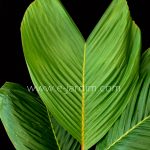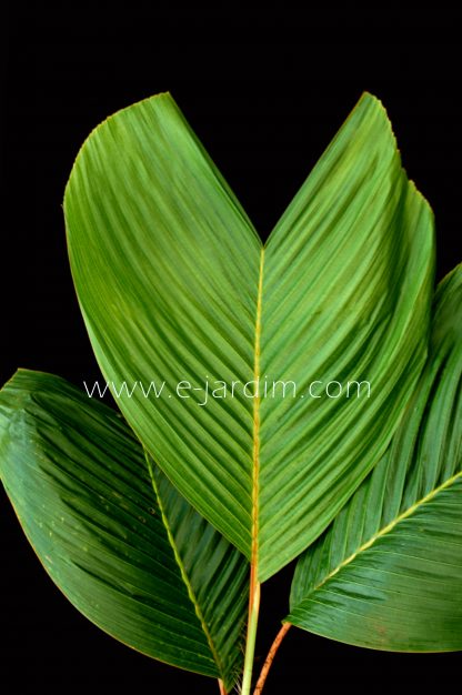 Linda palmeira, de ráquis laranja-avermelhada e folhas enormes e inteiras, amareladas. Possui raízes adventícias na base, que transmitem um aspecto bonito e curioso à planta.